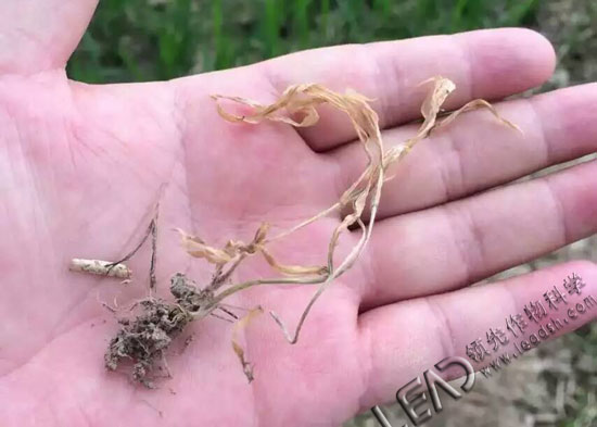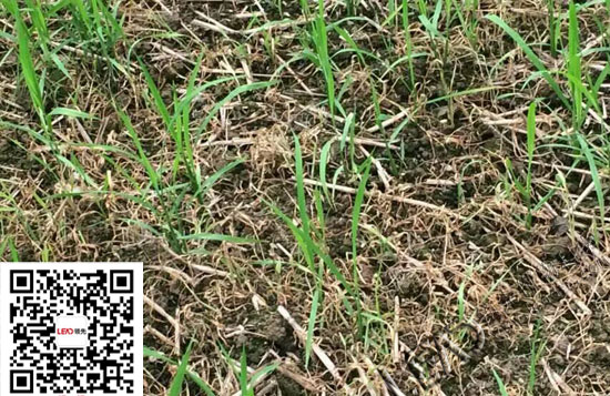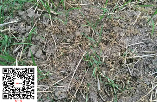 水稻除草剂稻乐垦施药第7天效果图,水稻2~3叶,马唐3~4叶,红根稗草3~4叶,麦苗6~7叶。马唐、稗草已经死,麦苗叶面大面积枯萎。