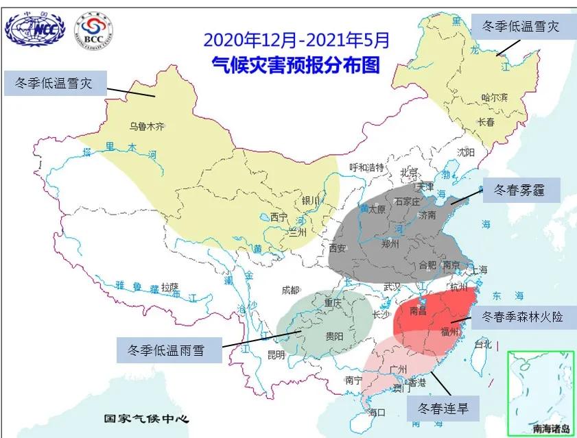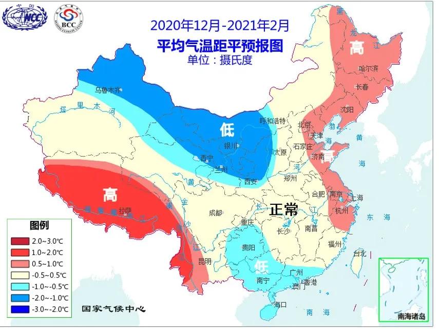 预计今年冬季(2020年12月至2021年2月)影响我国的冷空气活动频繁,势力偏强,主要以西北路径影响我国,全国大部气温接近常年同期到偏低,需特别重视隆冬(2021年1月)可能出现大范围强低温雨雪过程。