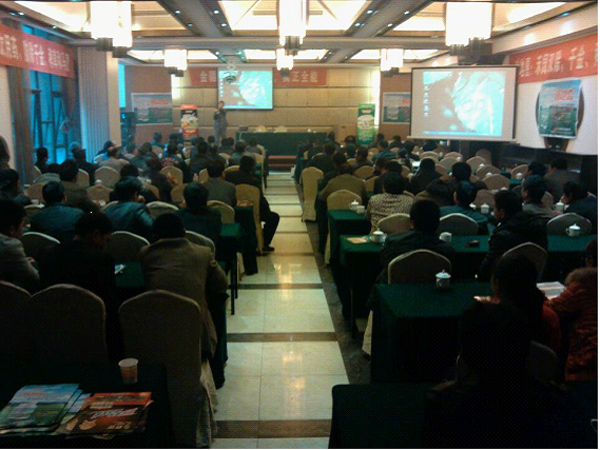 会议上,领先作物科学有限公司副总,首席内训讲师赵晓康先生发表了热情洋溢的讲话,同时也针对溧阳当地实际种植情况,结合领先作物科学在水稻田杀虫、杀菌、除草等方面的产品,向溧阳的百名种植能手展示了领先作物科学水稻高产增收的配套管理方案,引起了众多种田能手的广泛兴趣。