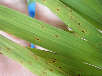 秧苗叶片和叶鞘上病斑多为芝麻粒大小的病斑,椭圆或近圆形,褐色。有时病斑扩展连片呈条形,病重时可造成成片枯死。