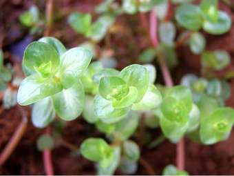 株高10—30cm,茎四棱形,略带紫红色,下部伏地生根,单叶对生,无柄或近无柄;倒卵形或椭圆形。花序生于叶腋内,有数朵花,花萼钟状,花瓣4,淡红色。