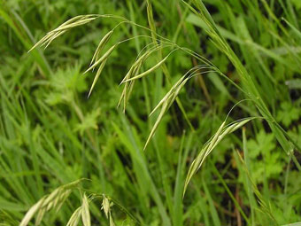 须根细而稠密。杆直立,丛生,株高30—100cm,叶鞘紧密抱茎,被白色柔毛,叶舌透明膜质,顶端具不规则的裂齿;叶片均被白色柔毛,又是背面脱落无毛。圆锥花序开展,向下弯曲,分枝细弱;小穗幼时圆筒状,成熟后压扁,颖披针形,具膜质边缘。英国背腹压扁,呈线状。