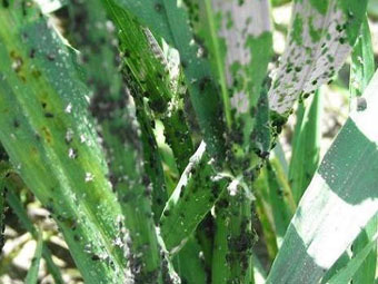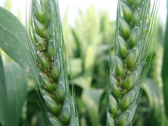 小麦蚜虫分布极广,在全国各麦区均有发生,常年发生面积在23万公顷左右,约占播种面积的46﹪并且种类繁多。目前我国普遍发生的是麦长管蚜、麦二叉蚜、黍缢管蚜、麦无网长管蚜。若蚜以针状口器吸食小麦叶片、茎杆和嫩穗的汁液。使叶片出现黄斑或全部枯黄、生长缓慢、分蘖减少,千粒重减少。麦长管蚜多在植物上部叶片正面为害。