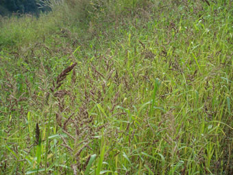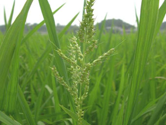 属禾本科一年生草本植物。别名 芒早稗、水田草、水稗草等。秆丛生,基部膝曲或直立,株高50—130cm。叶片条形,无毛;叶鞘光滑无叶舌。圆锥花序稍开展,直立或弯曲;总状花序常有分枝,斜上或贴生;小穗有2个卵圆形的花,长约3mm,具硬疣毛,密集在穗轴的一侧;颖有3—5脉;第一外稃有5—7脉,先端具5—30mm的芒;第二外稃先端具小尖头,粗糙,边缘卷孢内样。颖果米黄色卵形。种子繁殖。种子卵状,椭圆形,黄褐色。