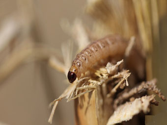 玉米螟的危害,主要是因为叶片被幼虫咬食后,会降低其光合效率;雄穗被蛀,常易折断,影响授粉;苞叶、花丝被蛀食,会造成缺粒和秕粒;茎秆、穗柄、穗轴被蛀食后,形成隧道,破坏植株内水分、养分的输送,使茎秆倒折率增加,籽粒产量下降。玉米螟适合在高温、高湿条件下发育,冬季气温较高,天敌寄生量少,有利于玉米螟的繁殖,危害较重;卵期干旱,玉米叶片卷曲,卵块易从叶背面脱落而死亡,危害也较轻。