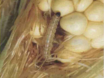 穗期防治:花丝蔫须后,剪掉花丝,用90%的敌百虫0.5 公斤、水150公斤、粘土250公斤配制成泥浆涂于剪口,效果良好;也可用50%或80%的敌敌畏乳剂600-800倍液,或用90%的敌百虫800~1000倍液,或75%的辛硫磷乳剂1000倍液,滴于雌穗顶部,效果亦佳。